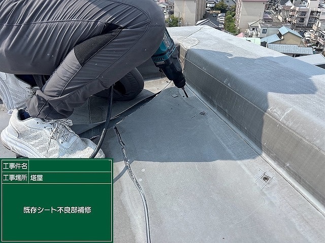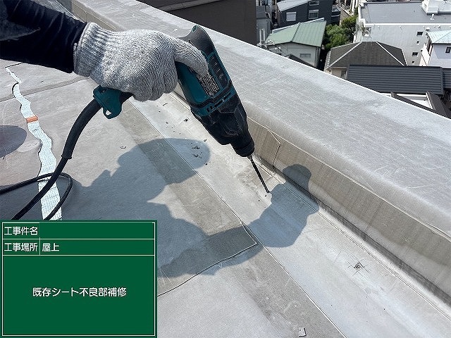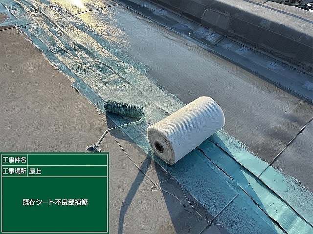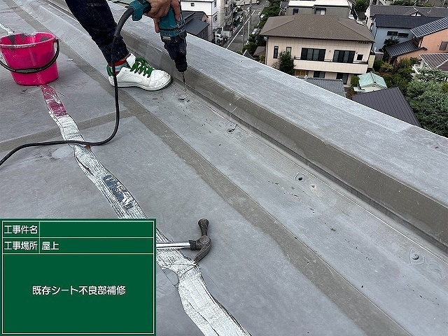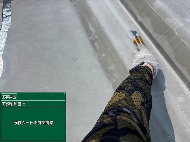 既存防水シートの浮きや破れ、膨れなどの不良箇所を確認し、部分的な補修を行います。劣化部分を放置したまま施工すると、防水層全体の耐久性に影響を及ぼすため、事前に不具合を解消します。下地の健全性を確保することで、安心して次工程へ進めます。