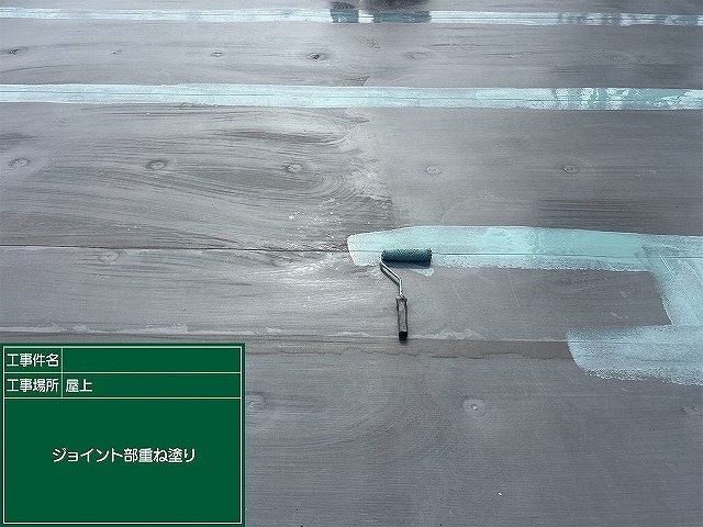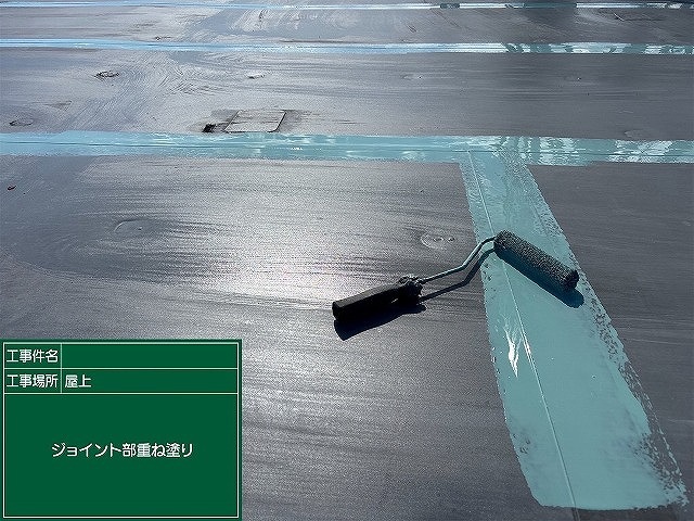 シートの継ぎ目や入隅、立上り部など、雨水が侵入しやすい箇所にはウレタン材を重ねて補強します。特にジョイント部は防水トラブルが起きやすいため、膜厚を確保しながら慎重に施工。防水層の弱点をなくし、耐久性の高い仕上がりを目指します。