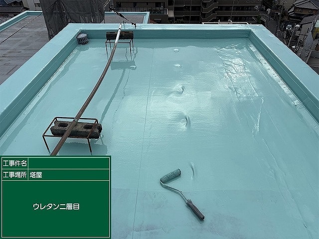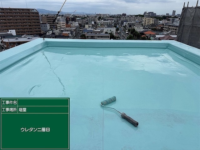 西宮市Dマンション ウレタン塗膜防水で屋上防水工事を行いました!